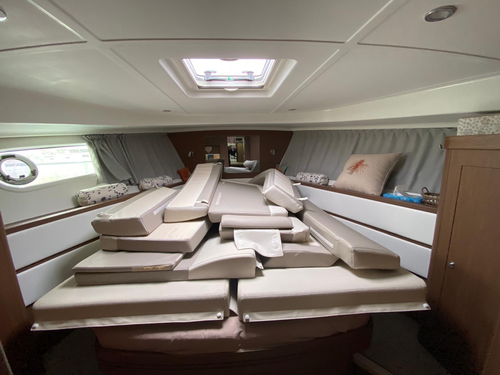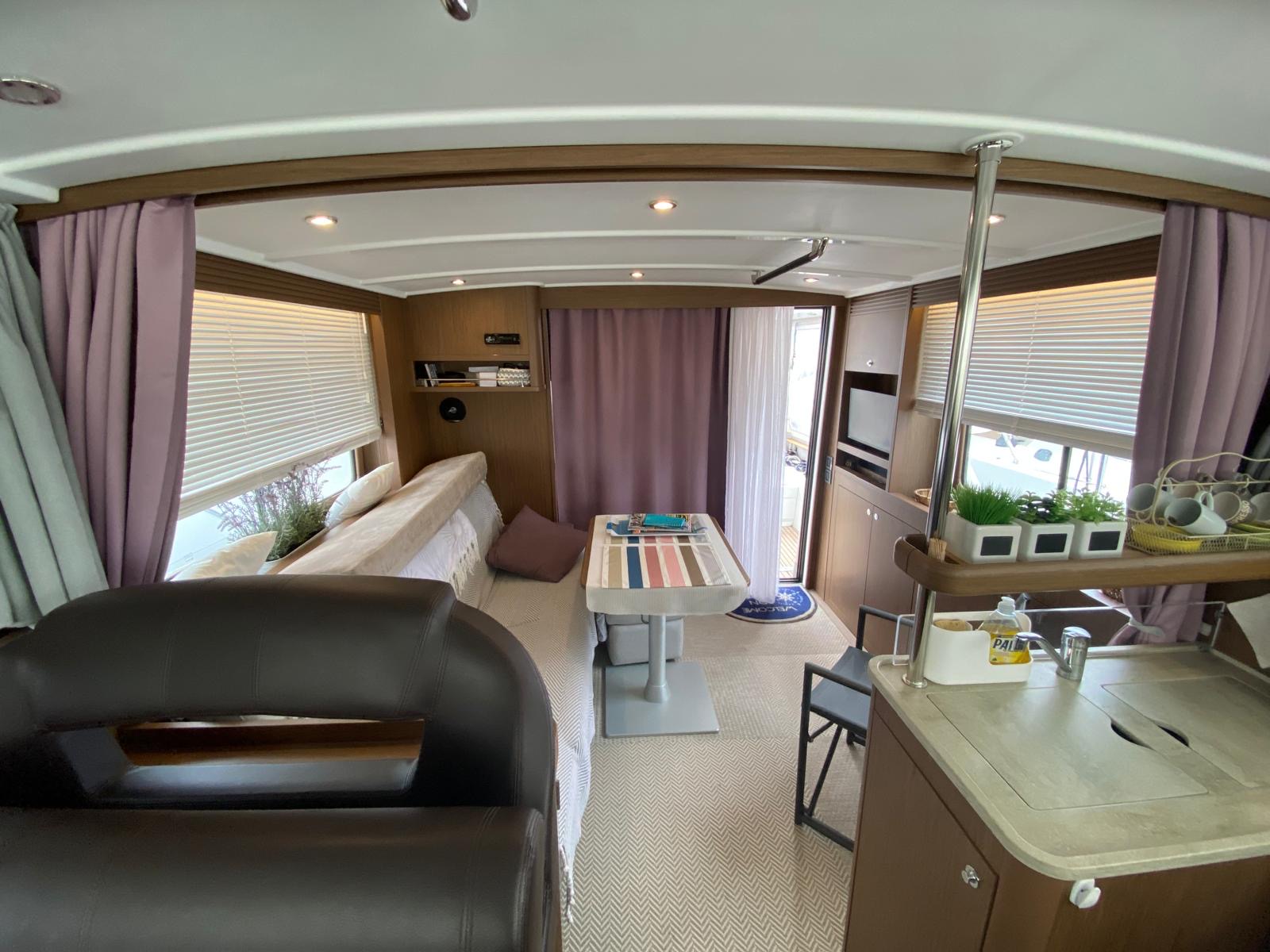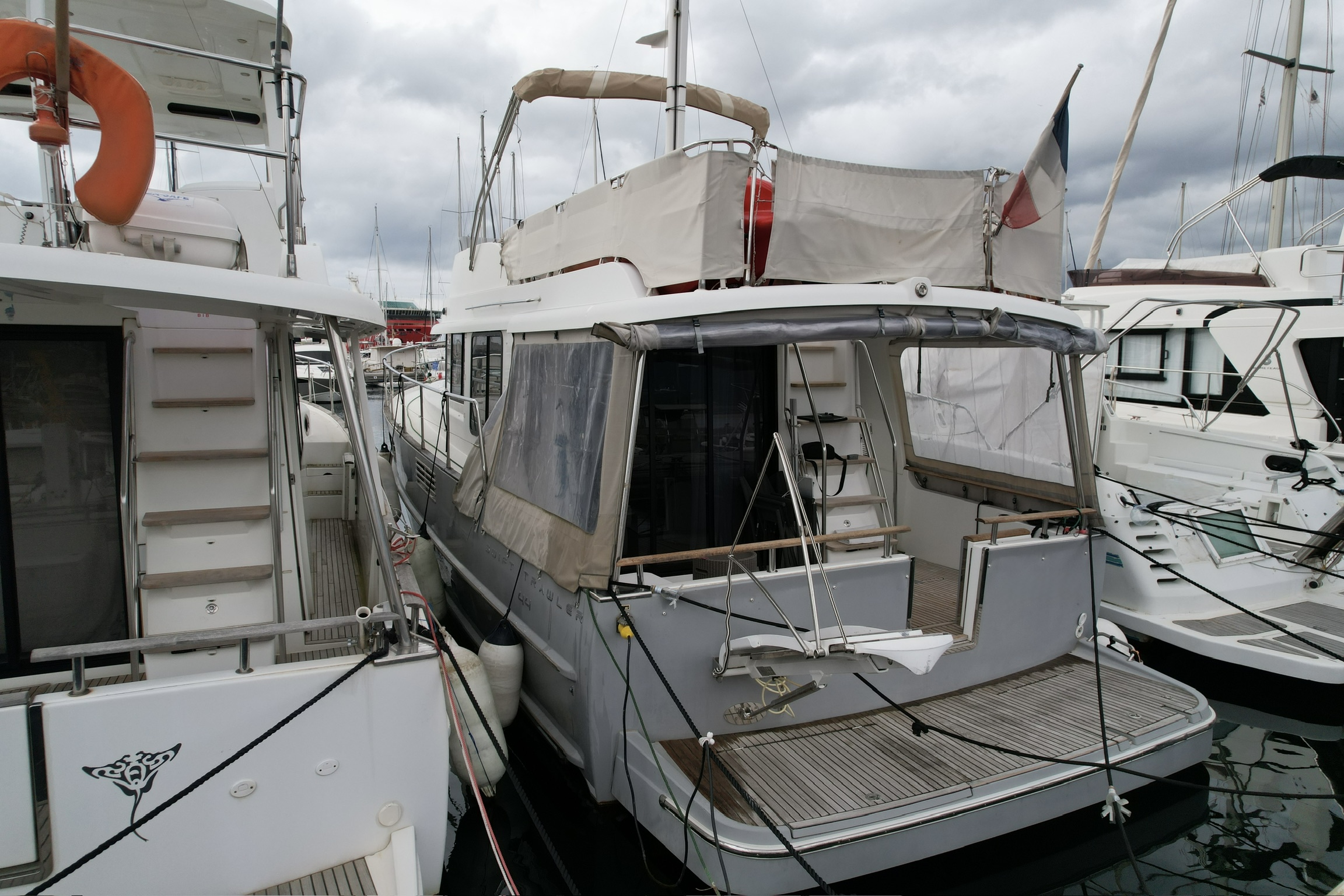 BENETEAU SWIFT TRAWLER 44 de 2018, deuxième main. Un modèle de référence sur le marché des trawlers, reconnu pour sa fiabilité, son confort et son excellente autonomie en navigation. Proposé ici dans une version très recherchée 2 cabines / 2 salles d’eau, ce modèle séduit par ses volumes généreux, sa circulation fluide et ses finitions élégantes en Alpi noyer. Équipé de deux moteurs Volvo Penta D4 300 CV diesel totalisant seulement 290 heures, ce bateau offre une opportunité rare avec une mécanique peu sollicitée et parfaitement adaptée aux longues croisières en mer comme aux navigations côtières. L’ajout d’un groupe électrogène renforce considérablement son autonomie au mouillage, un atout majeur pour les programmes en Méditerranée. Ce Swift Trawler 44 bénéficie d’un niveau d’équipement premium incluant la climatisation dans le salon, une passerelle hydraulique, des propulseurs d'étrave et de poupe, un pack électronique Raymarine complet (GPS, Axiom Pro, AIS, VHF, pilote automatique), ainsi que de nombreux équipements de confort tels que cockpit et passavants en teck, flybridge aménagé avec bain de soleil, table en teck, réfrigérateur et grill, cuisine équipée avec micro-ondes grill et réfrigération additionnelle. Idéal pour un achat de bateau d’occasion haut de gamme, ce trawler allie performance, sécurité et confort de vie à bord, faisant de lui un choix incontournable pour les amateurs de bateaux Beneteau, de yachts d’occasion et de croisières longue durée.